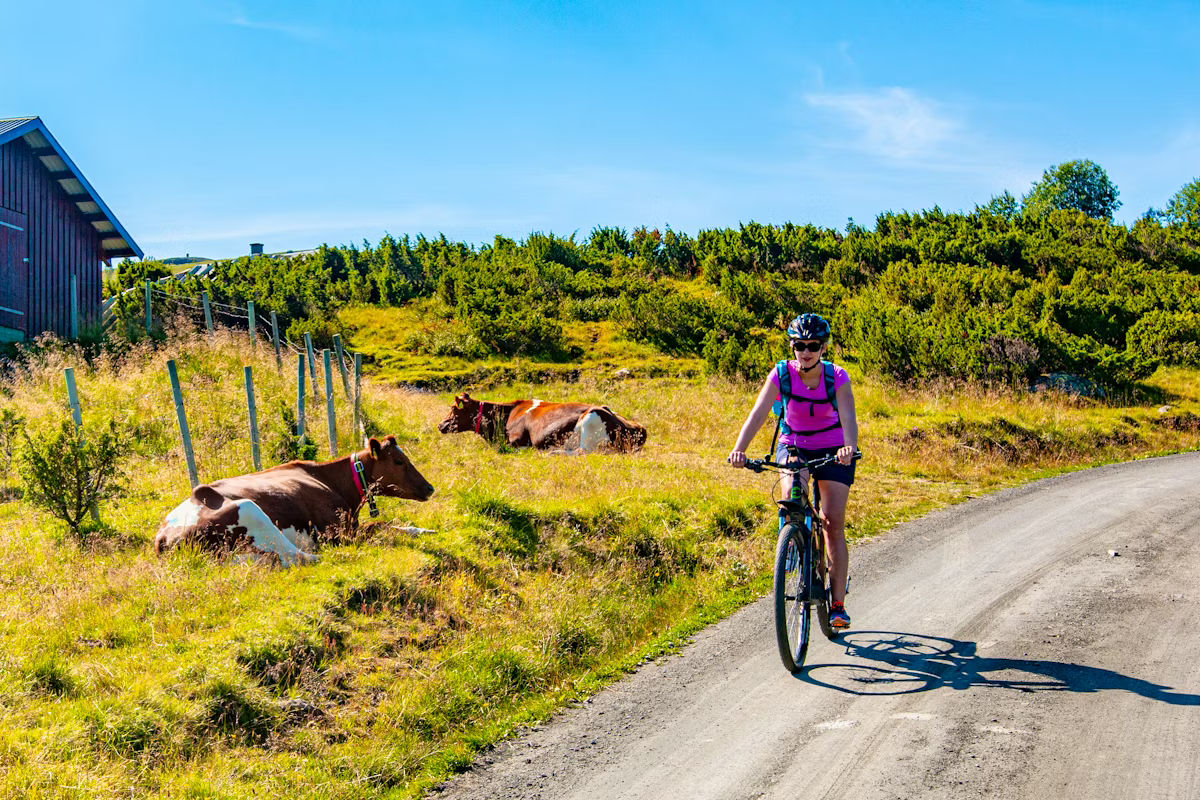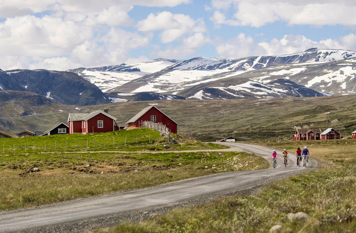 Leden bjuder på en härlig mix av gamla grusvägar, små sjöar och porlande bäckar, blommande sommarängar och traditionellt bondeliv. Du cyklar genom fjällterräng och det är naturnära, stillsamt och genuint – en resa genom det norska kulturlandskapet när det är som allra finast.