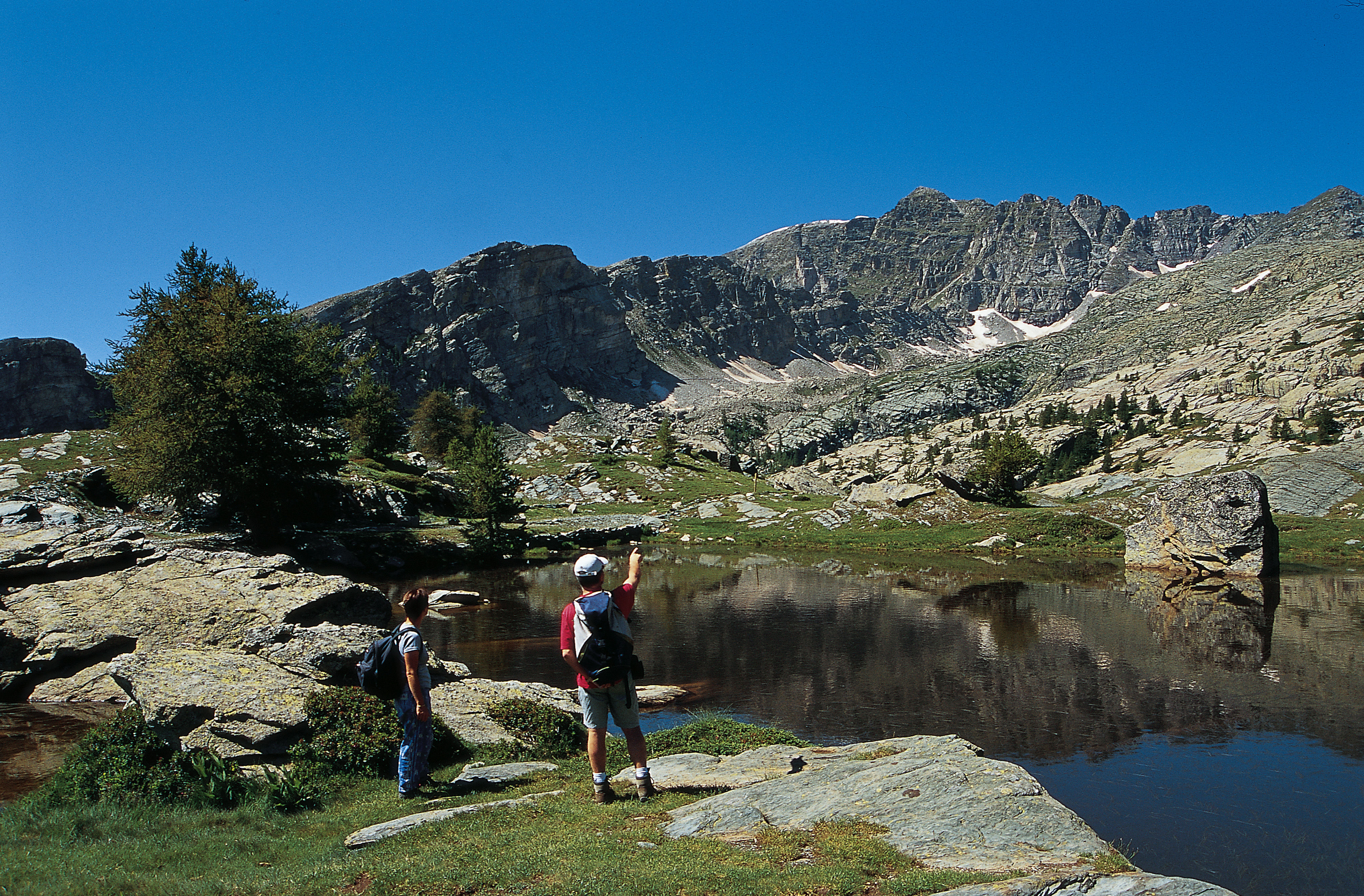 Resan börjar med en tågresa djupt in i Val Roya, som sträcker sig från Medelhavet det blå till skidbackarna i passet Colle di Tenda på gränsen till Italien. Från Tende eller Saint-Dalmas går en transferbuss under säsong till Castérino. Utanför perioden juni–september ordnas privat transfer vid behov. Den lilla byn Castérino ligger på drygt 1500 meters höjd och är en perfekt bas inför kommande dagar i Mercantour. Här omges de få husen av friska alpängar, skog och lovande toppar.