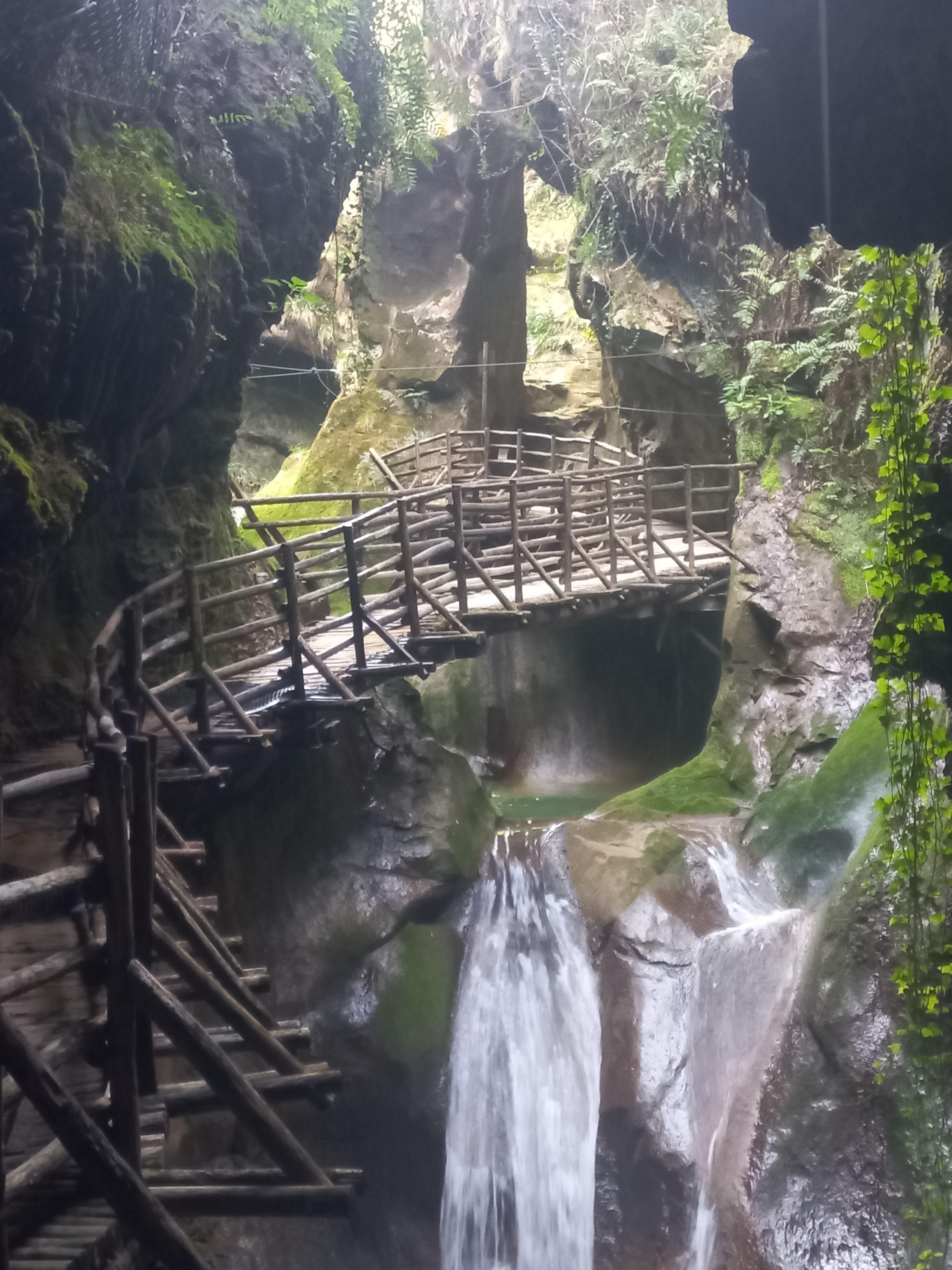 De dramatiska Caglieron-grottorna med vattenfall och gångbroar